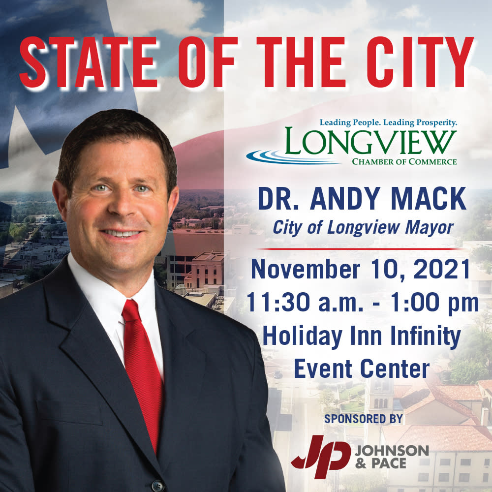 The Longview Chamber of Commerce takes great pride in hosting this event each year to give the current Mayor a platform with the business community to share what the city has accomplished over the past year and what great things lie ahead.